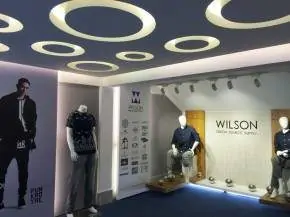 A display area for this garment buying house was designed for high-lighting their products. Travertine & veneer ply was used at the back-drop wall, where the brand name was high-lighted through theses small but significant changes.