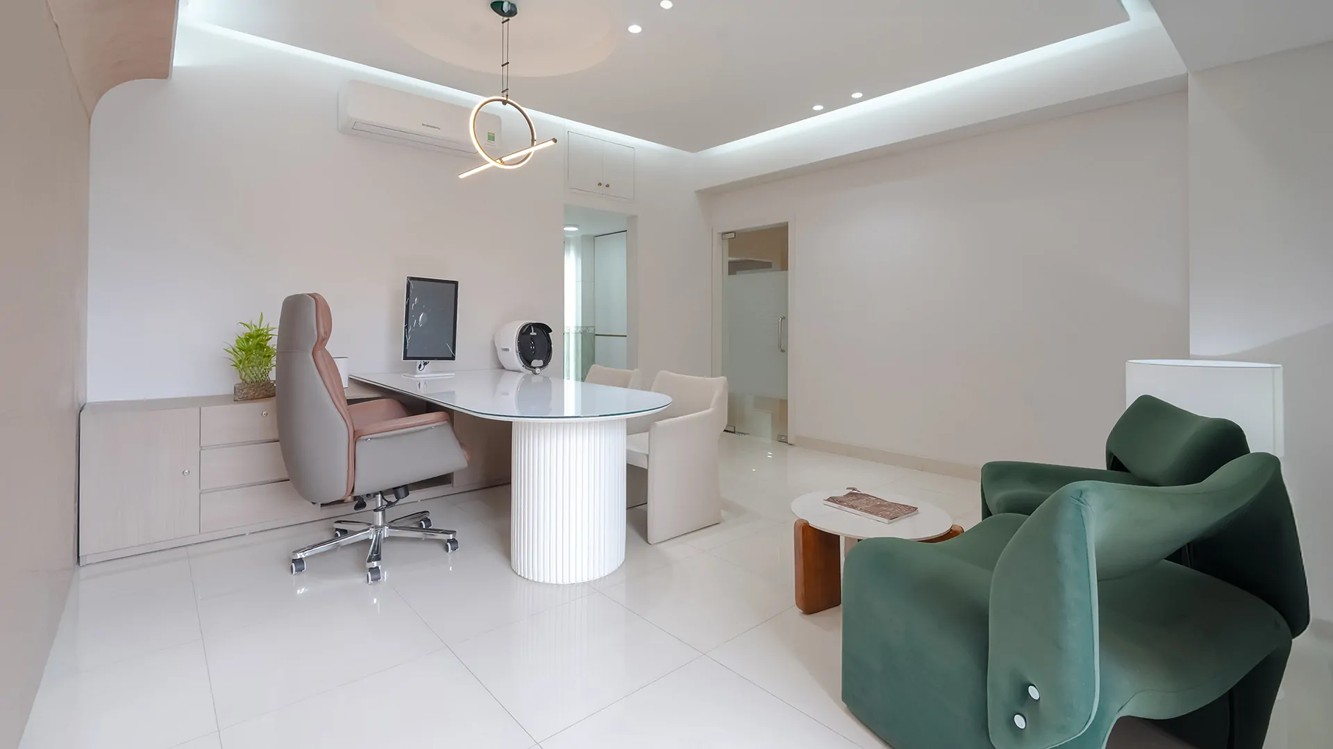- Lighting: Suspended LED panels with 4000–5000K color temperature